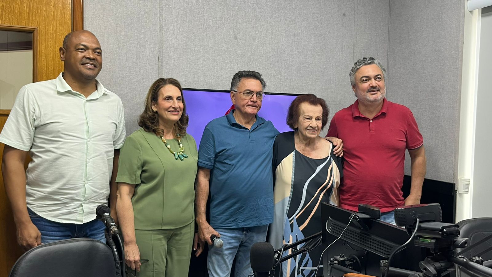 Dona Adélia, a filha Mara e os profissionais da Rádio Cultura FM: Mauro Silva, Nestor Machado e Nestor Júnior (Foto: Rani Mistieri)