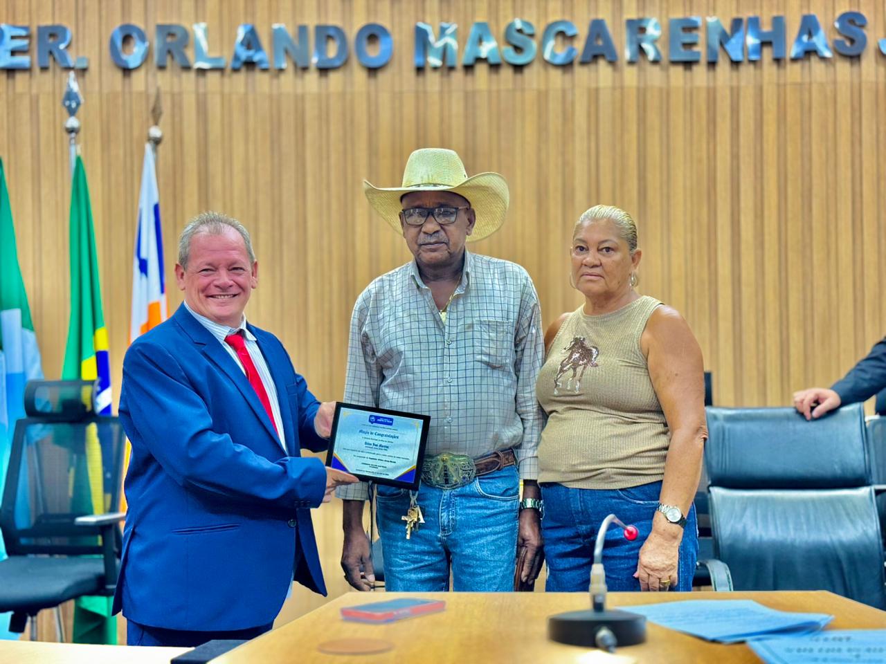 De autoria do vereador Gilsinho do Binega (PRD), foi entregue uma honraria a Ailton José Martins, conhecido como Ailton Peão. Reconhecido como um dos grandes nomes do cutiano, o aparecidense acumulou diversos prêmios ao longo de 18 anos dedicados ao rodeio.
